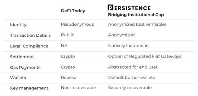 Persistența este un ecosistem de produse financiare atât pentru investitorii cu amănuntul, cât și pentru instituțiile financiare mari. Persistența vrea să fie o punte între finanțele descentralizate către economia tradițională și să contribuie la dezvoltarea aplicațiilor DeFi în matricea NFT.