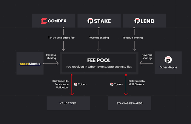 Interacțiunea cu ecosistemul: valoarea XPRT se bazează pe succesul aplicațiilor descentralizate în ecosistemul Persistență. Taxele de protocol ale dApp-urilor vor fi colectate pentru deținătorii de jetoane XPRT.